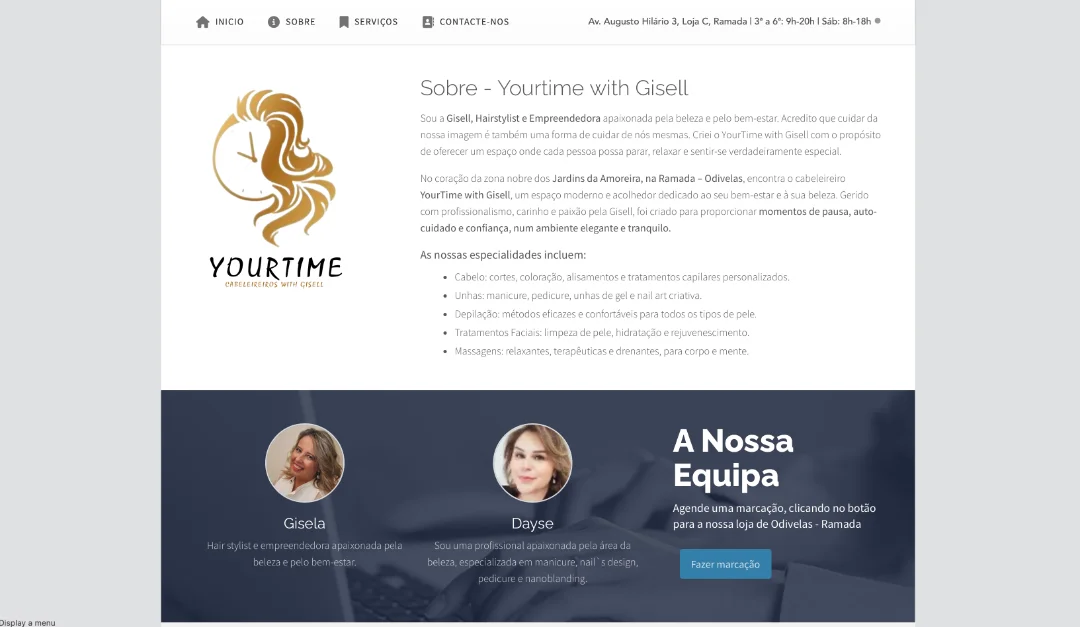 No coração da zona nobre dos Jardins da Amoreira, na Ramada – Odivelas, encontra o cabeleireiro YourTime with Gisell, um espaço moderno e acolhedor dedicado ao seu bem-estar e à sua beleza. Gerido com profissionalismo, carinho e paixão pela Gisell, foi criado para proporcionar momentos de pausa, auto-cuidado e confiança, num ambiente elegante e tranquilo.